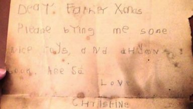 A letter written by a five-year-old girl to Santa in the 1930s has been found by builders