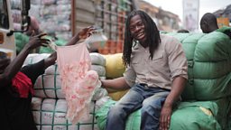 One country takes more of our cast offs than any other, Ghana in West Africa and that’s where our trail really started. We arrived in the capital Accra. Every three days shipping containers packed full with our used clothing arrive and are unloaded at Accra’s wholesale market. It’s a mesmerising sight - the sheer scale of the operation is staggering. The surrounding streets and warehouses are piled high with thousands of bales of used clothing from Europe and North America, fuelling a whole industry of traders, porters and food sellers. This is where we met Eric, a wholesaler who regularly visits the UK on buying trips and who imports clothes from recycling companies based in Leeds, Coventry and Birmingham. Almost all of the trousers and shirts he imports have been donated to British charities.