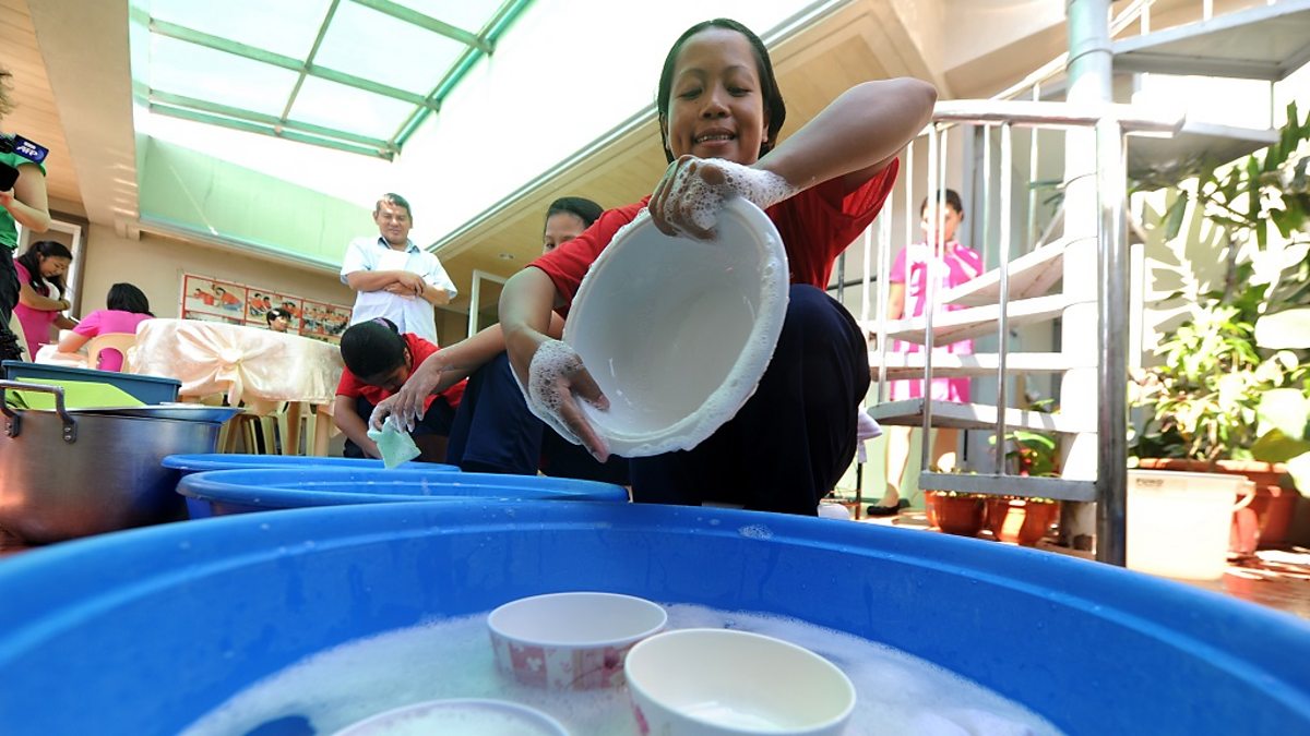 Photo of Filipino trainee maid learning to do the dishes: Getty Images