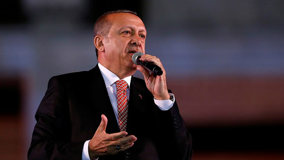 (Image: President Erdogan of Turkey delivers a speech during the Democracy and National Unity Day event. Credit: Getty Images)