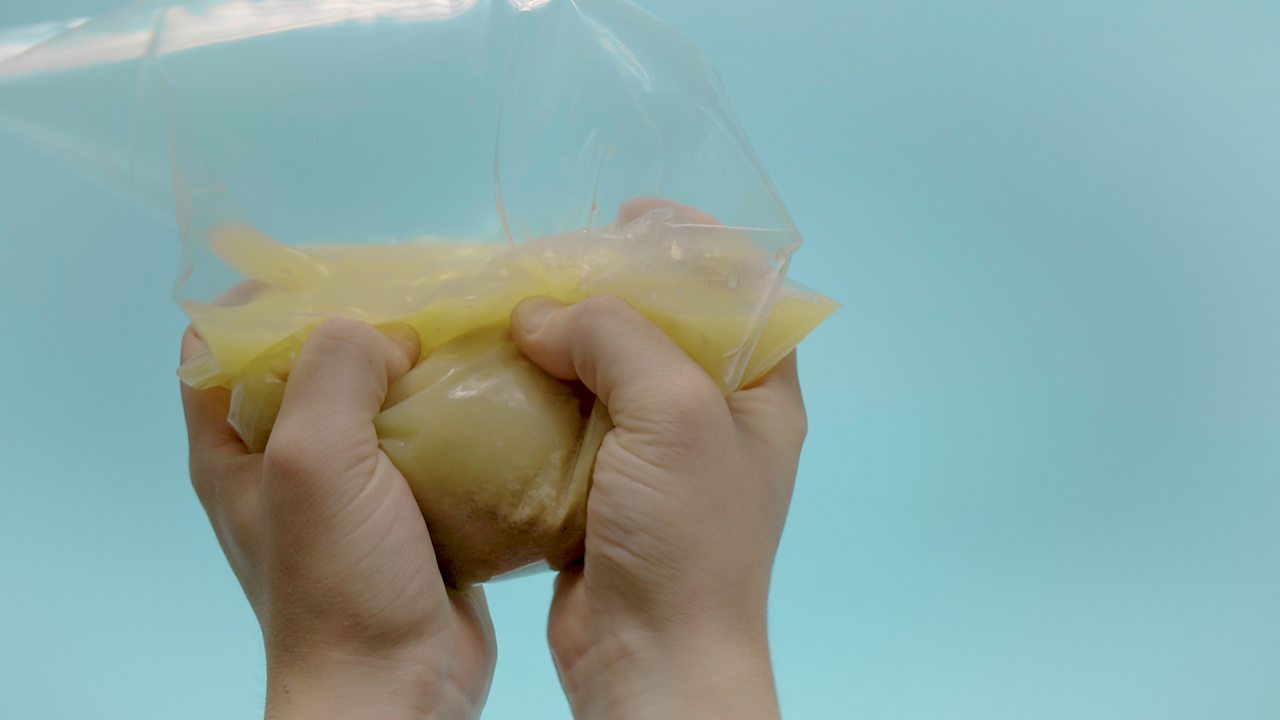 The clear plastic bag represents the stomach which is a large muscular sac that contains hydrochloric acid, it is able to churn the food, mixing it with the acid so that it can be broken down into even smaller molecules.