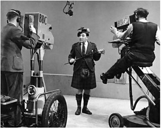 Peter Sinclair, the popular Scottish comedian, performs for Cabaret Cartoons, a live light entertainment series broadcast in the 1930s