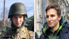 There are posters on lampposts around town, as we’ve seen across the east and north. One of them says: "Don’t flee, defend Ukraine." Another swears at Russia and Vladimir Putin, and there’s a third I hadn’t seen before which shows a baby curled up on a Ukrainian military uniform next to the slogan "everything will be ok".