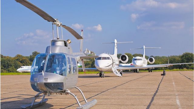 The use of private jets and helicopters results in large carbon footprints
