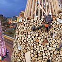 Hello Wood worked with London-based visual artists Creatmosphere to create this 11-metre-tall Christmas tree for London’s Granary Square in 2015. Built from 365 wooden sledges, one for every day of the year, the tree is named Let It Snow as a call for snow at Christmas; the artists intended to highlight the impact of climate change. Sledging on London's hills at Christmas hasn't been possible for many years due to lack of snow. Once the tree was dismantled all the sledges were given away to local people, or sold to raise money for charity.