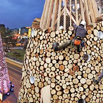 Hungarian architectural group Hello Wood believes that Christmas should be a time for communities to come together and think of those who are less fortunate. Charity Tree, its 16-metre tall installation in Budapest’s Erzsébet Square, was made from 10,000 pieces of firewood; when the tree was dismantled in January, all the firewood was donated to needy local families to keep them warm during the wintertime.