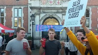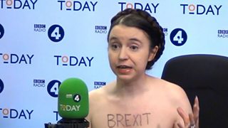 Dr Victoria Bateman campaigns against Brexit by writing messages on her naked body