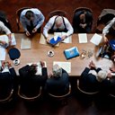 A discussion in an aircraft hanger